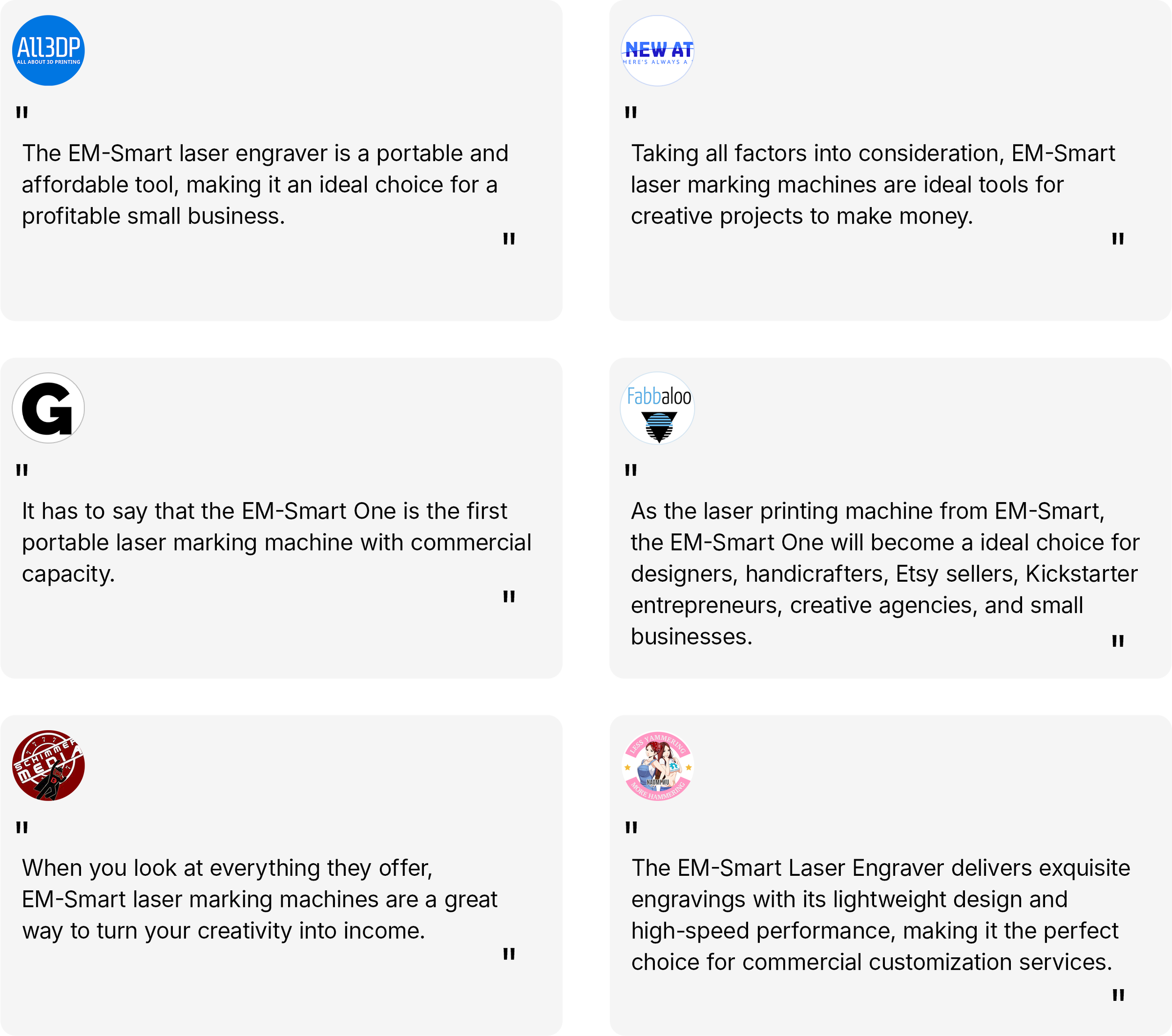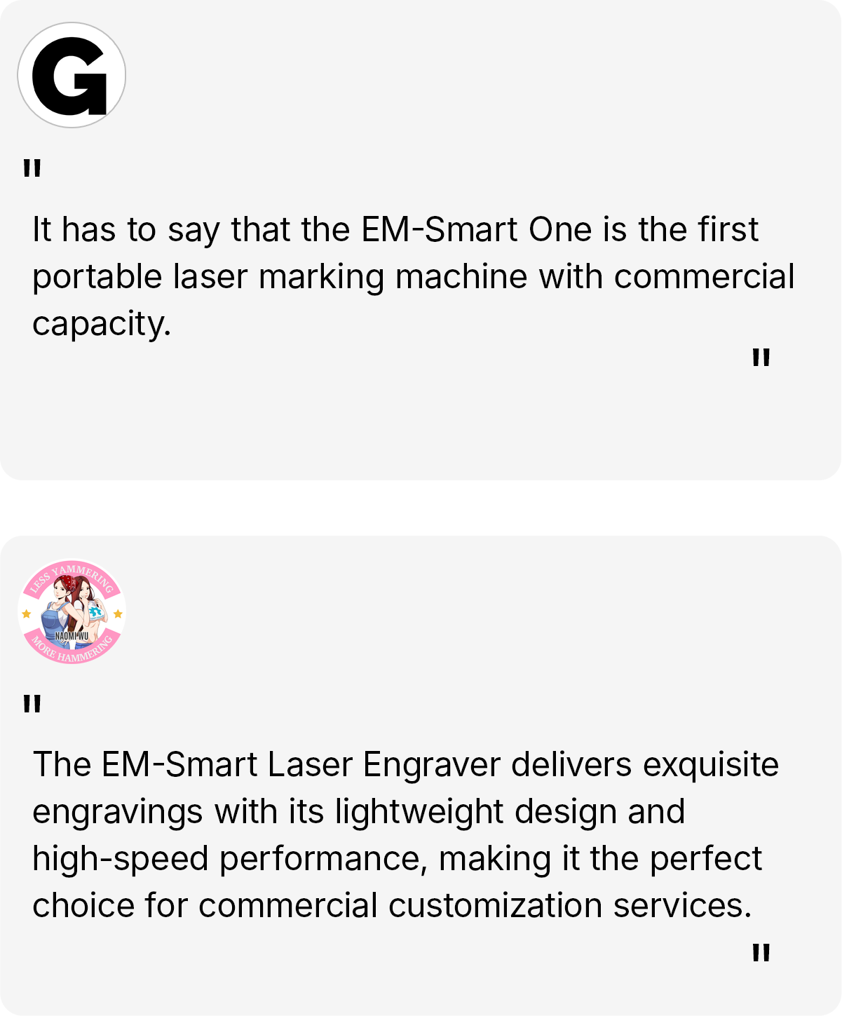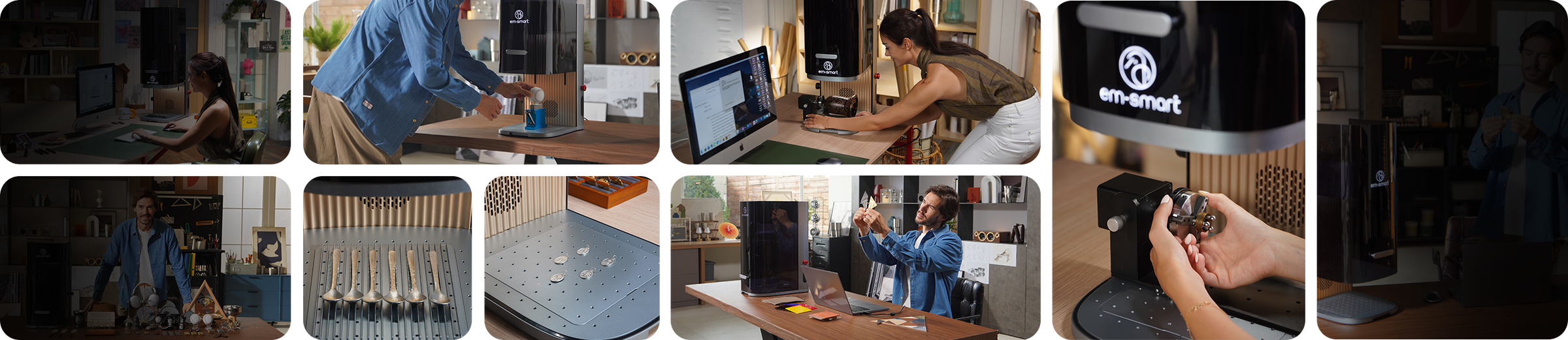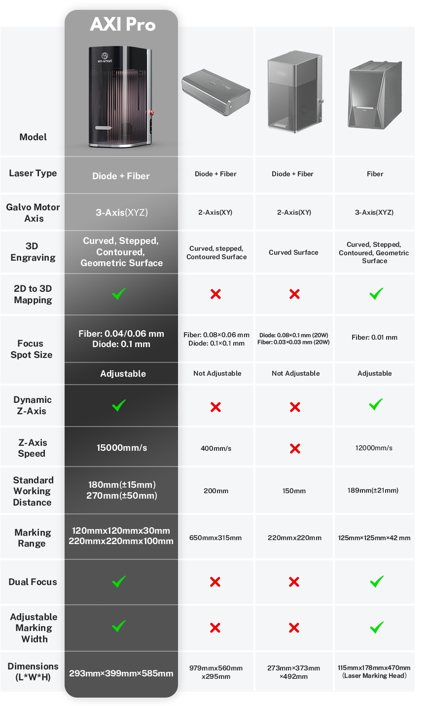 A true 3D laser engraver, built for complex surfaces and limitless materials. With 2D-to-3D mapping and a dual-laser system (Fiber + Diode) , EM-Smart AXI Series brings industrial-grade precision and speed into a compact desktop form. A new era of creation is here.
