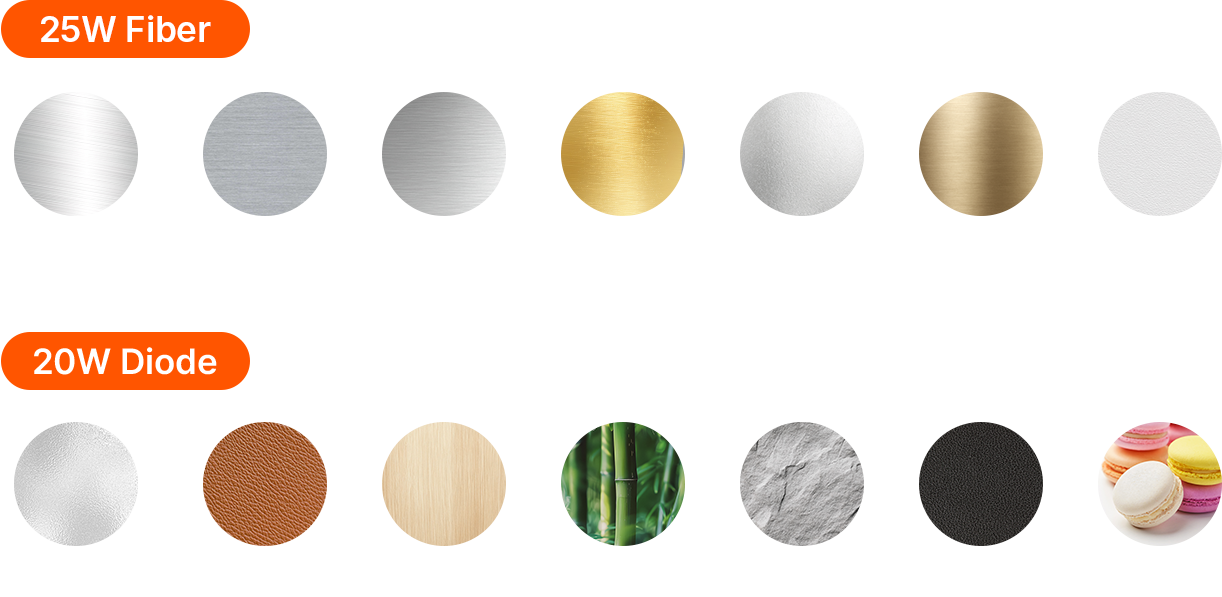 One machine. Two laser powers. Seamless switching. AXI Pro’s dual-source laser system adapts to every material—metals, plastics, leather, wood, stone, and even soft fabric—with no setup changes required.