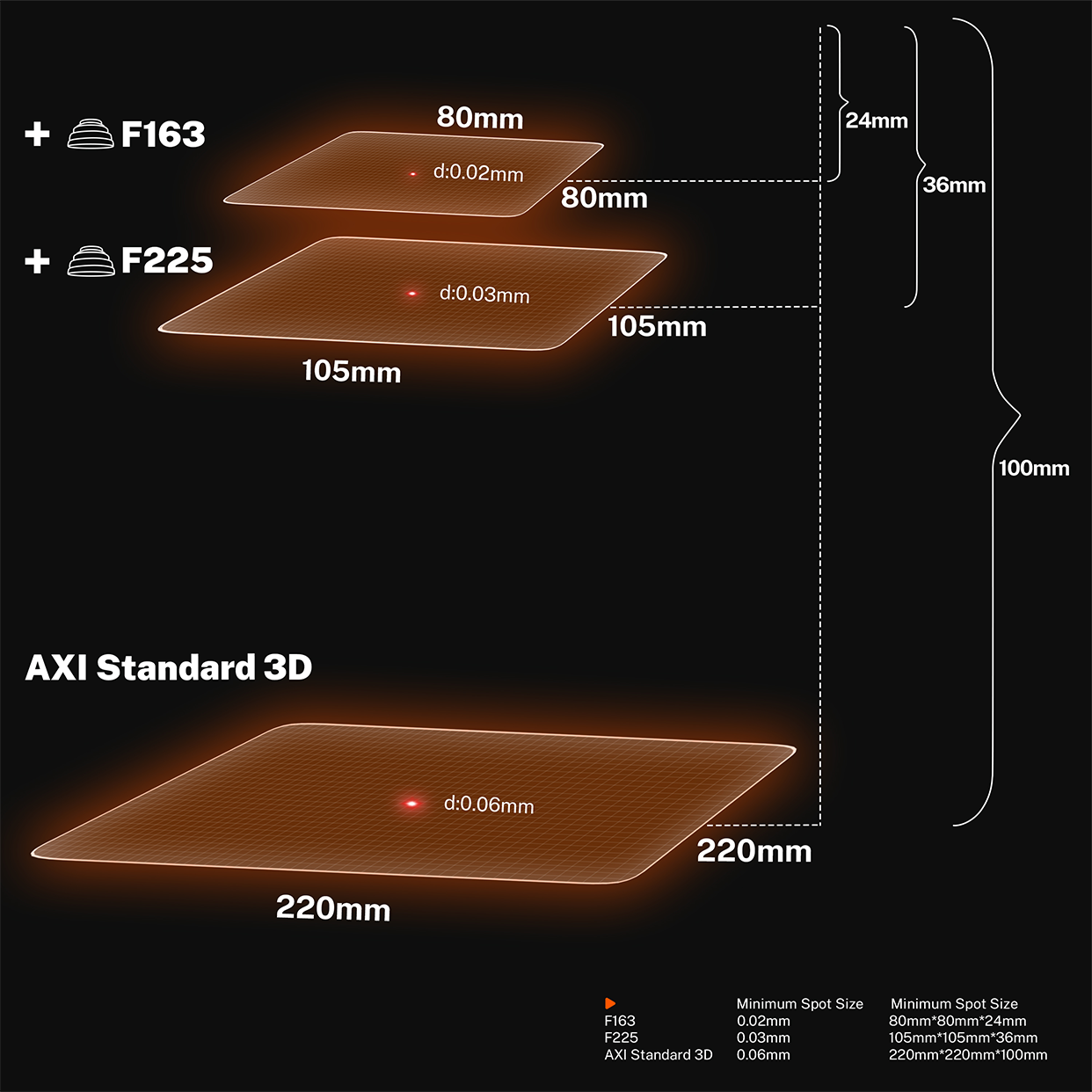 Swap lenses to suit the job — smaller spots for intricate work, larger for wide-area marking — all optimized with AXI’s dual-focus control.