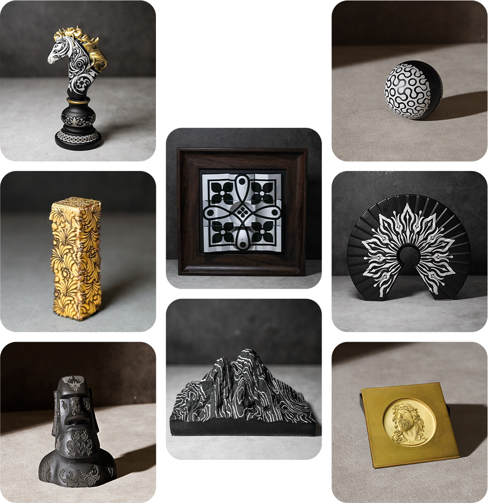 Go beyond flat marks. AXI engraves across X, Y, and Z with full dynamic focus. Every curve, slope, and contour is precisely traced — achieving flawless engraving on complex 3D forms with true depth and dimension.
